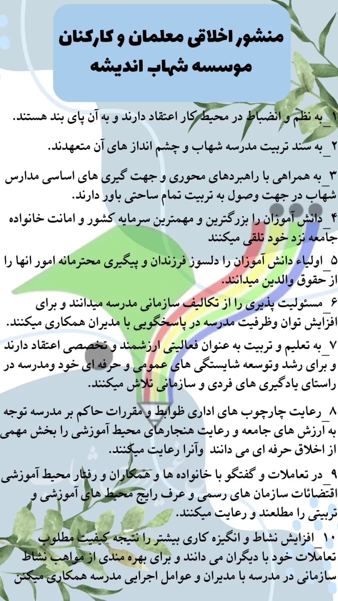 • آدرس: تهران، شهریار، شهر اندیشه، فاز3، خیابان چمران، جنب مرکز توانبخشی، مدرسه شهاب